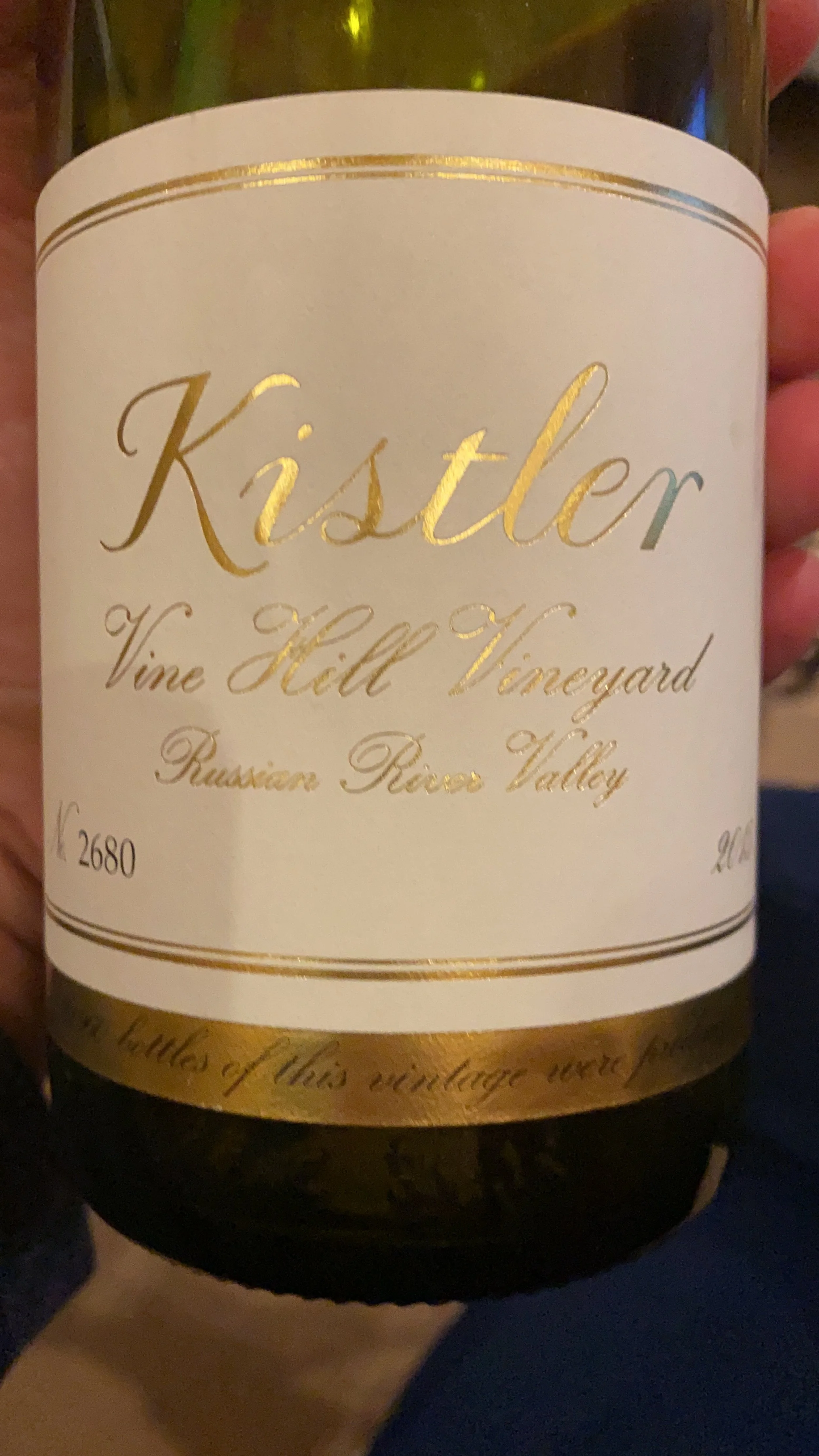 Kistler is one of my favorite producers of California Chardonnay. I drank this 2017 Vine Hill Chardonnay drank with some friends paired with the righteous chicken dinner (from Food and Wine magazine). The wine was terrific - flavors were mostly apple and citrus, with a touch of oak. Truly amazing. Was ready to drink. full bodied.